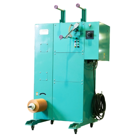 省スペース設計で安定した解舒張力を実現する、汎用性の高い巻き返し機